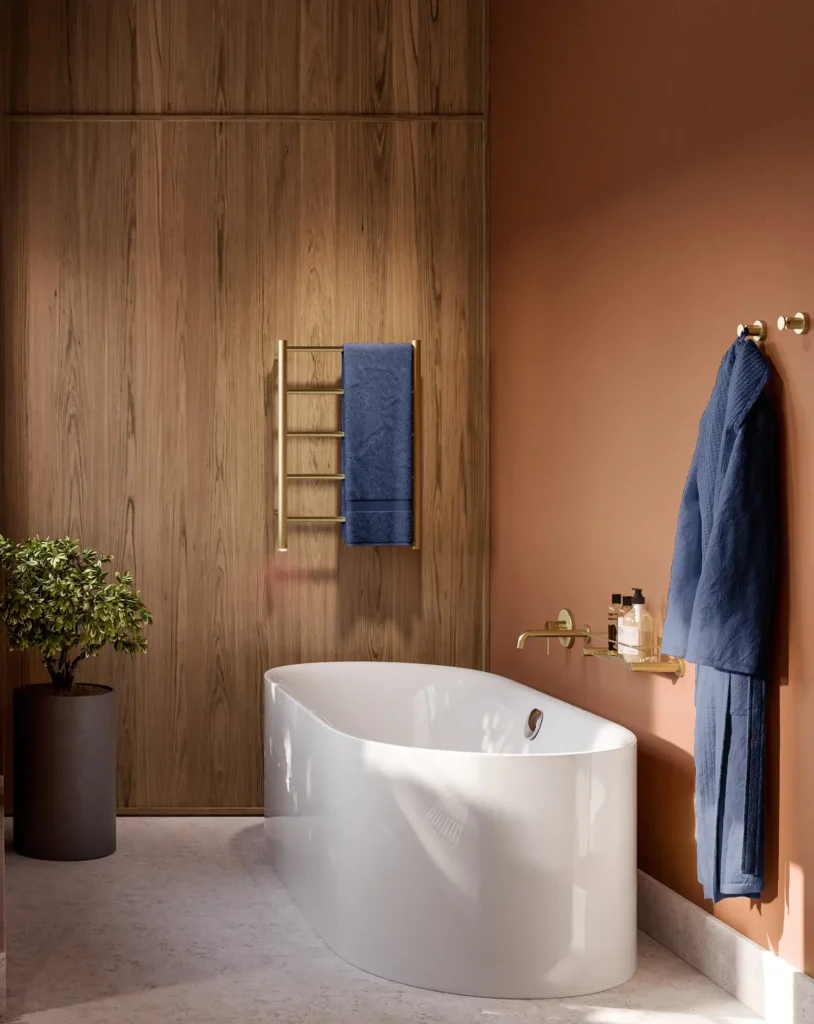 Elevate your space with the warm elegance of Bathroom Butler’s Brushed Champagne Gold Finish. Each piece is masterfully crafted to reveal a soft, satin-like sheen that exudes refined sophistication.