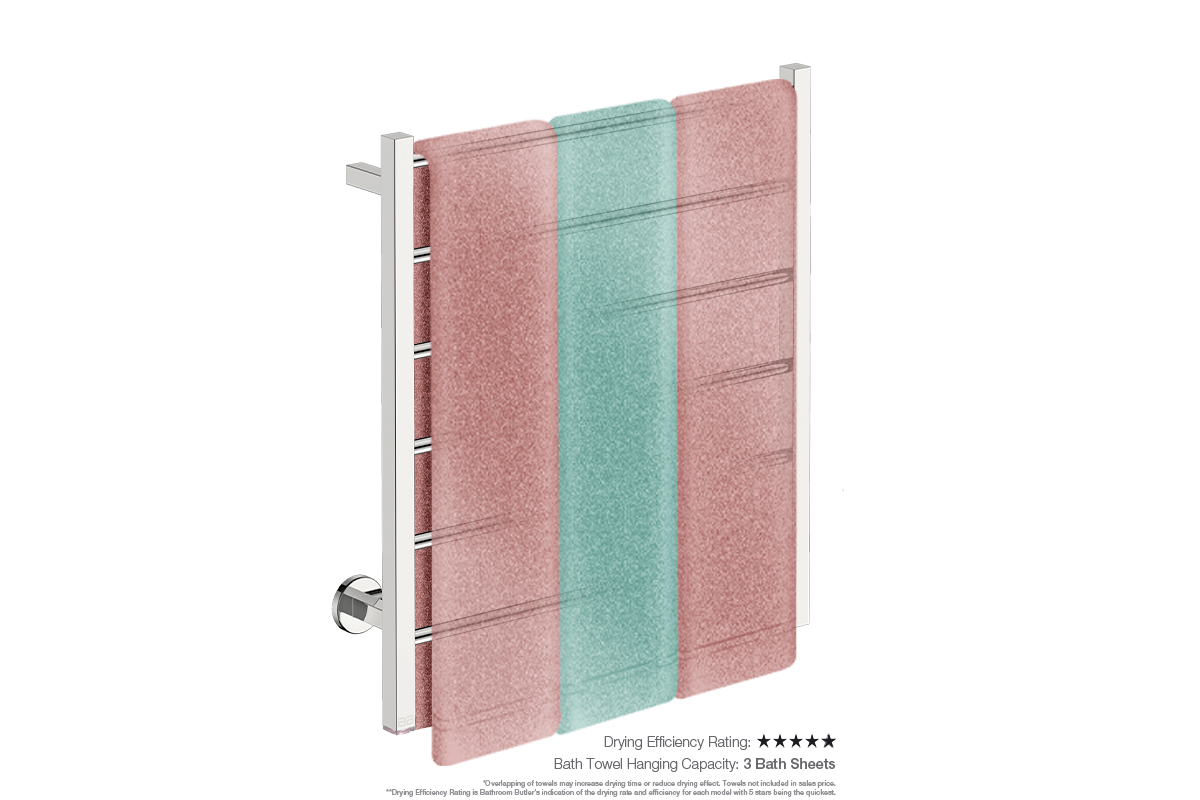 Towel Holding Capacity: This model has the capacity to dry 3 x folded bath sheets.