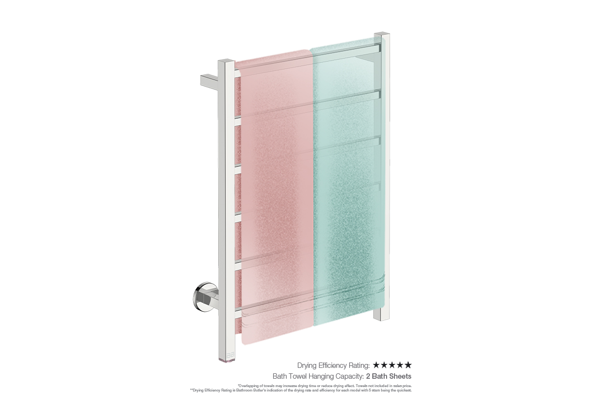 Towel Holding Capacity: This model has the capacity to dry 2 x folded bath sheets.