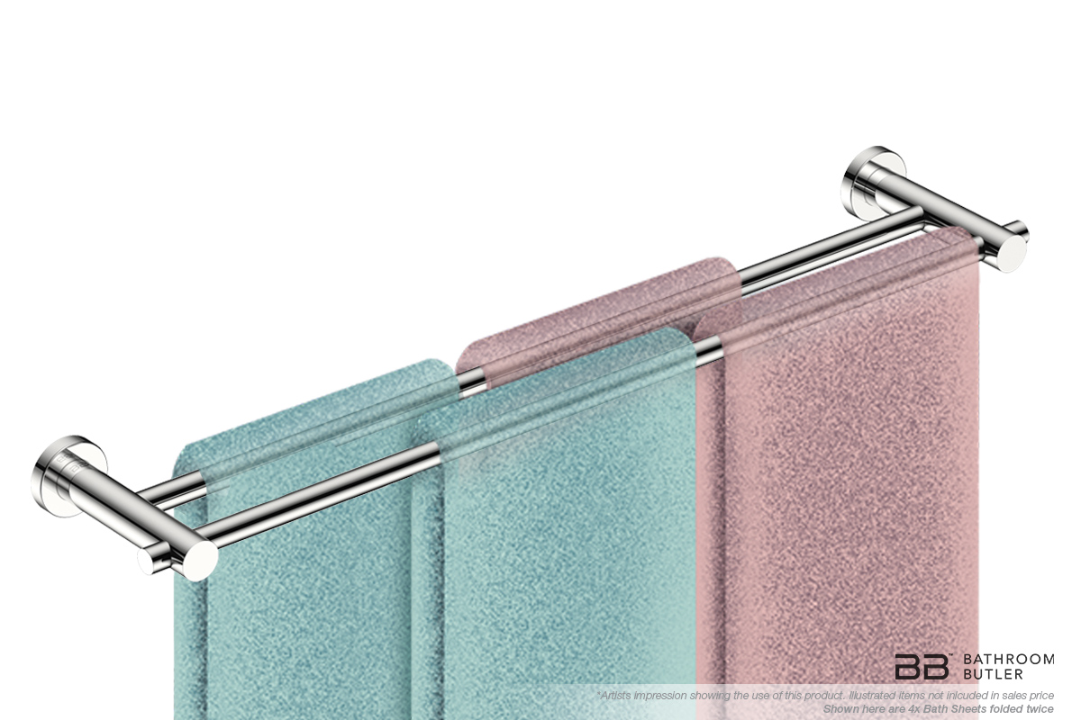 Your bathroom is the one room in your house that you want to be organised. Towels on the floor or towel storage space will not be a worry when installing a double towel rail. This rail will maximise usage and storage without needing additional space. Ideal for families and couples, small or medium sized bathrooms.