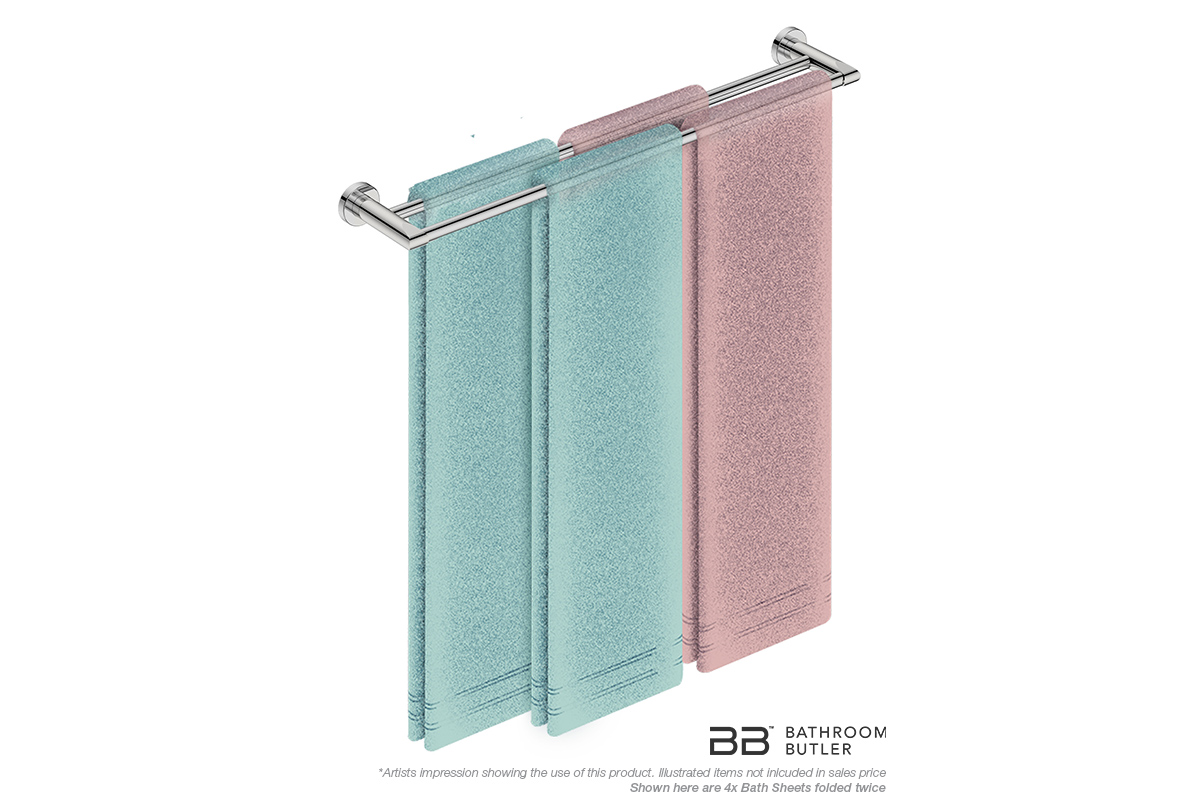 A double towel rail eliminates the problem of insufficient wall space. Two rails in one. Towel rails increase storage space and keep your towels organized next to your bath, shower and basin, allowing for air drying.
