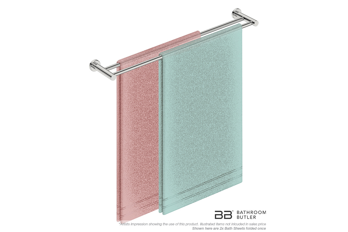 The round back plates of our 800mm stainless steel double towel rail enhances the timeless round features of this range that is designed to suit most bathrooms. It has the capacity to hold four folded bath sheets or two unfolded bath towels and it gets it’s strength and durability from the stainless steel material that we use, ensuring that the towel rail will not bend in the middle. The width of this towel rail can be made shorter if needed by removing the horizontal bar and cutting on site.