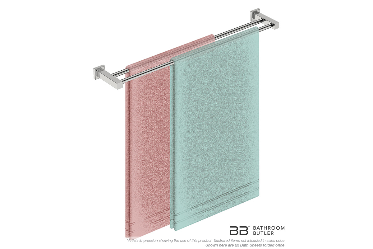 With square posts and round rails, this double towel rail will suit any modern, contemporary bathroom style. At 800mm wide, each rail has the capacity to hold two folded bath towels or one bath sheet, making it ideal for a main or family bathroom. Using only the highest grade stainless steel, we ensure the strength and durability of the rail. Should your wall space change, you have the ability to cut the rail to your preferred size by removing the horizontal bars and cutting on site.