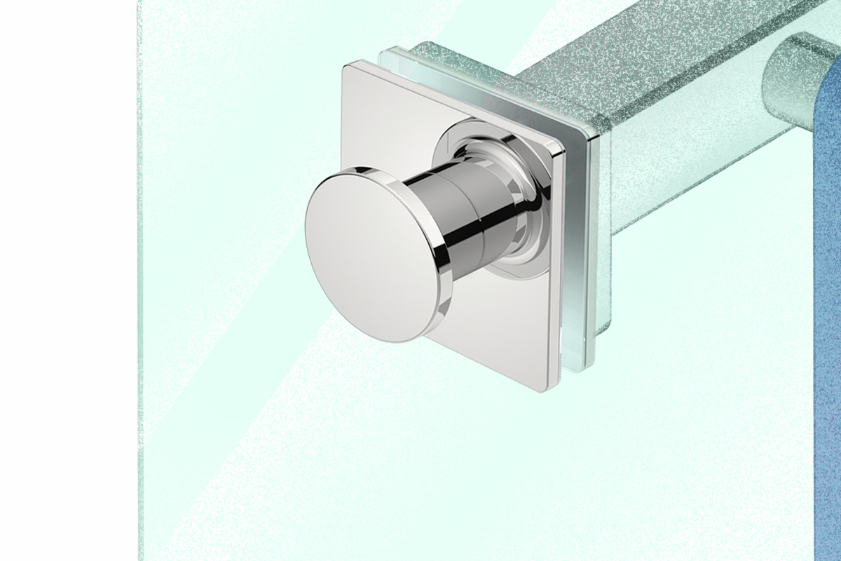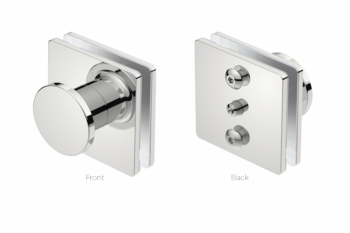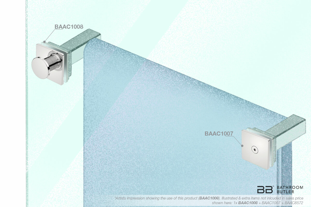 Designed to make the most of glass, offering a secure mounting for Bathroom Butler square bathroom accessories on glass shower doors with a pull knob on the opposite side. Available as optional extras.