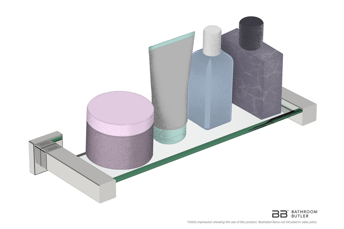 A glass shelf is ideal for storing bottles & jars in your bathroom making it the perfect elegant storage solution for hand wash, lotion and spray in your guest bathroom. You can mount it securely with our Rigid Loc mounting system next to your basin, bathtub or in the shower to store items that would otherwise clutter your space.