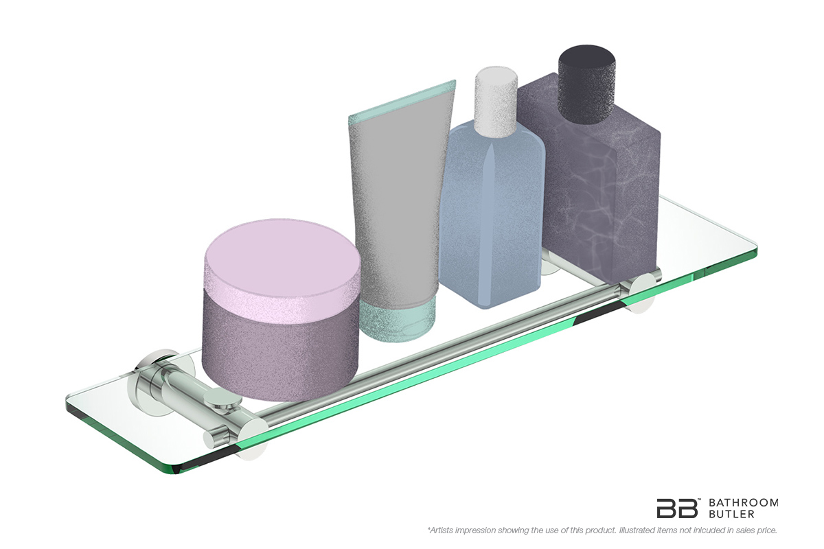 Items that you use daily such as hand soaps, a scented candle and glass containers housing make-up or face wipes can all be neatly organised and displayed. There are no sharp edges on the glass shelf making it suitable to install at any height.