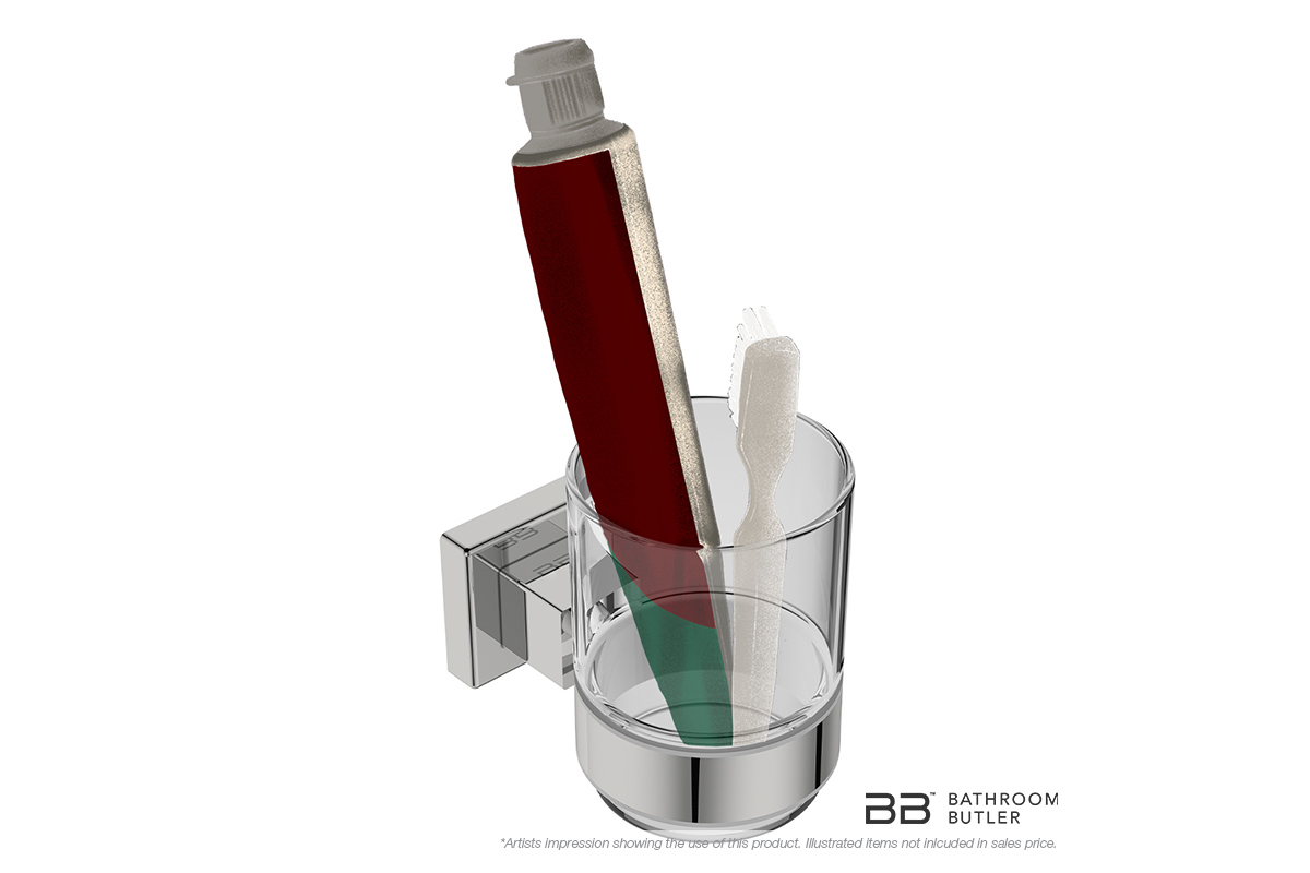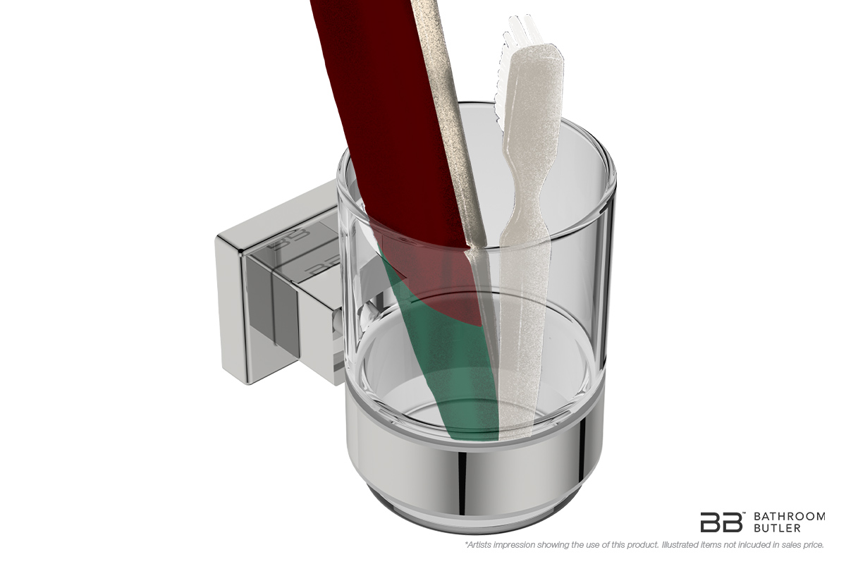 Due to it’s limited space and everyday use, a bathroom can at times be a messy and unorganized space, using a tumbler holder offers a practical solution. It is the ideal storage option for a toothbrush and toothpaste and the tumbler cup serves a dual purpose as it can be used for rinsing or having a sip of water. Add more than one to store smaller beauty tools like nail files, clippers, razors, tweezers etc.