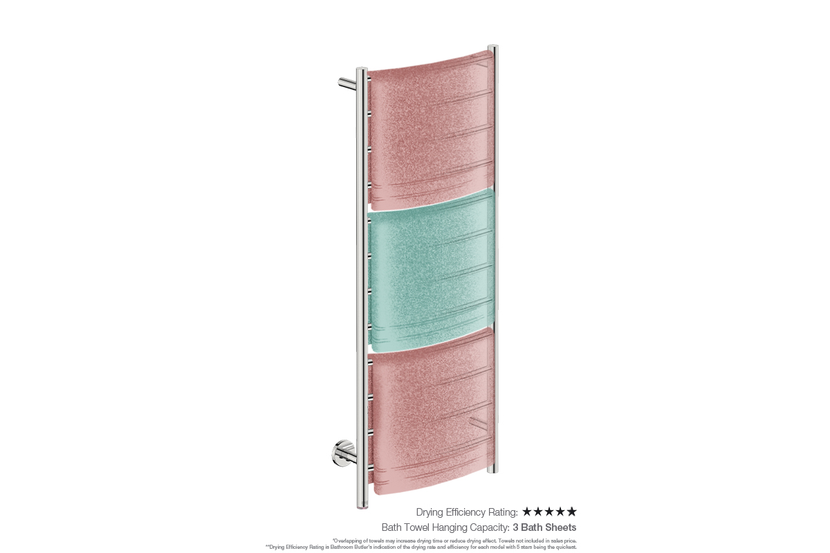 Towel Holding Capacity: This model has the capacity to dry 3 x folded bath sheets or 4 x folded bath towels.