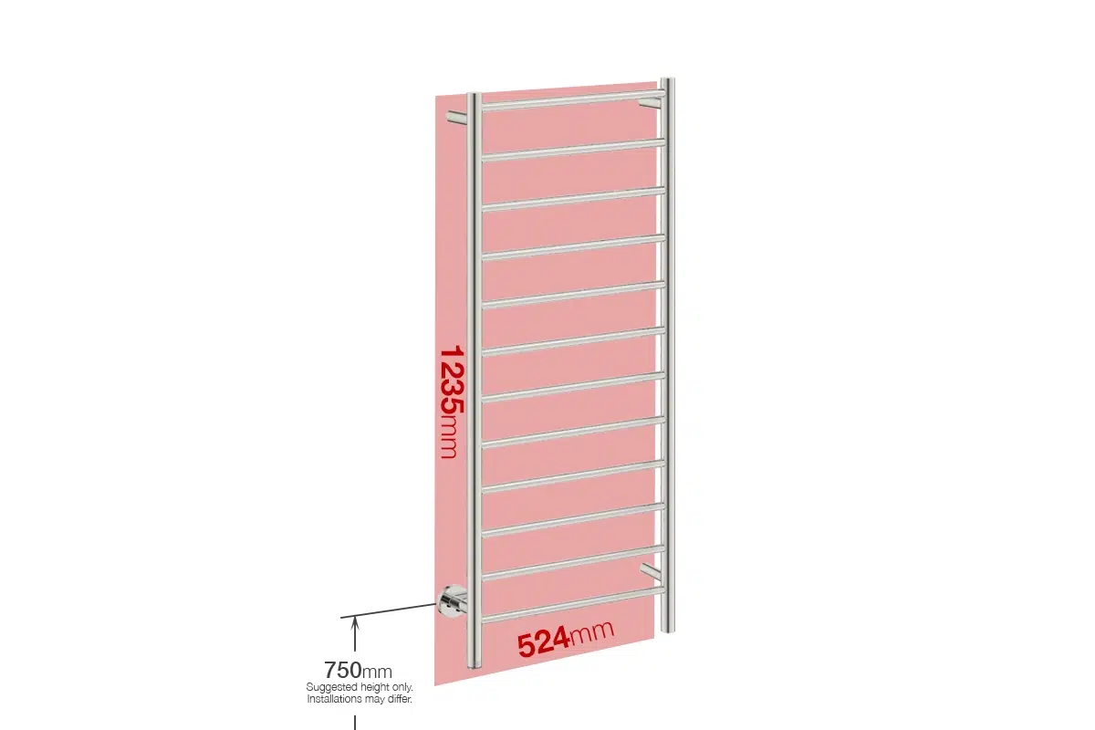 NATURAL 12 Bar 500mm Straight Heated Towel Rail with PTSelect Switch