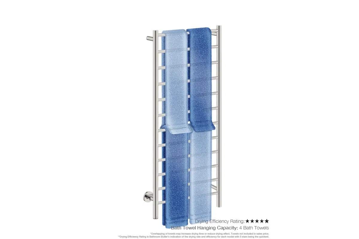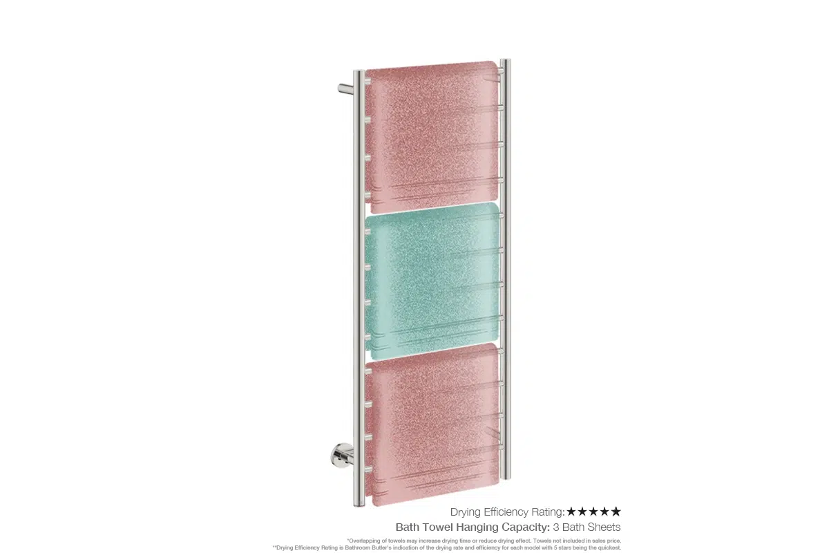 Towel Holding Capacity: This model has the capacity to dry 3 x folded bath sheets or 4 x folded bath towels.