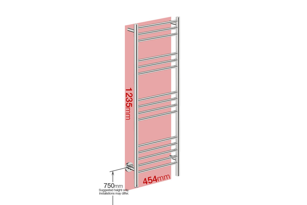 The Natural 15 bar at 430mm wide, fits perfectly into tall and narrow wall spaces. This heated towel rail comfortably holds 4 bath towels. A perfect solution to towel storage. Featuring the PTS switch that is a manual temperature adjustment controller, easy to reach and located at the bottom of the left-hand post.