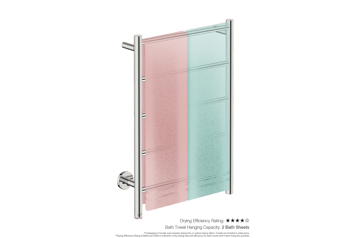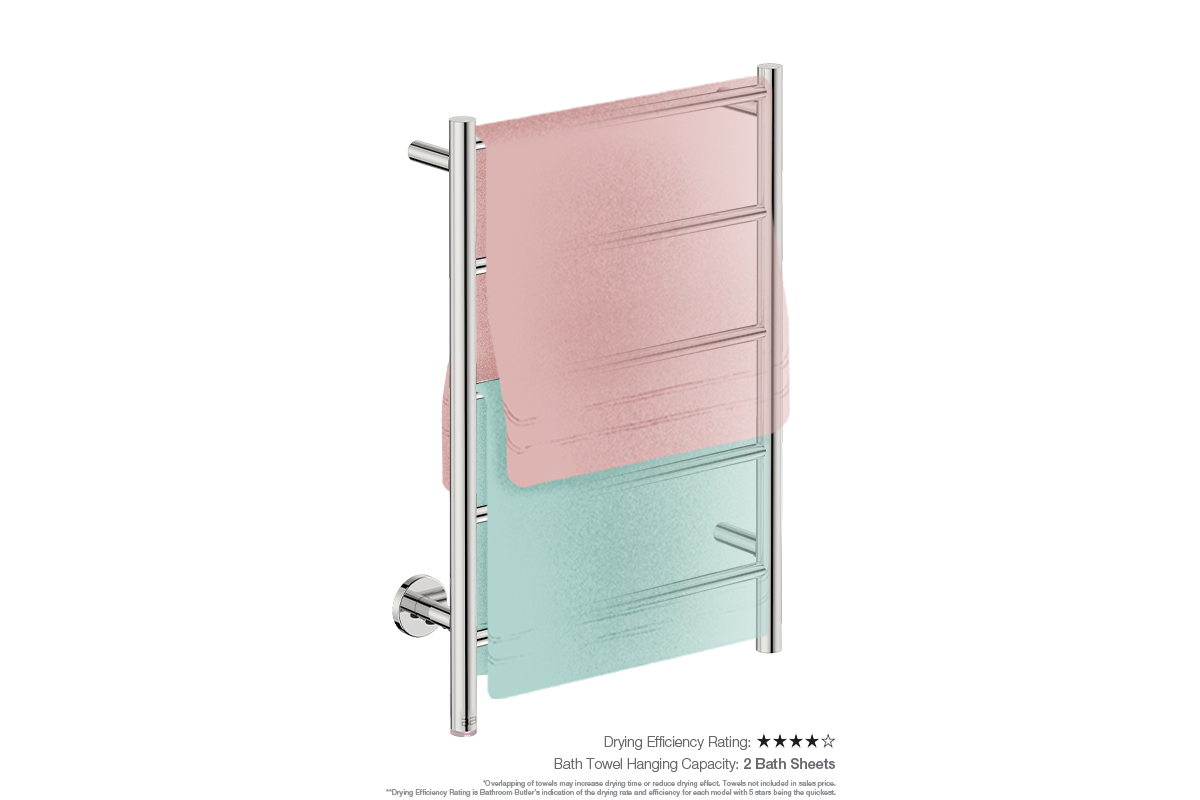 Towel Holding Capacity: This model has the capacity to dry 2 x folded bath sheets