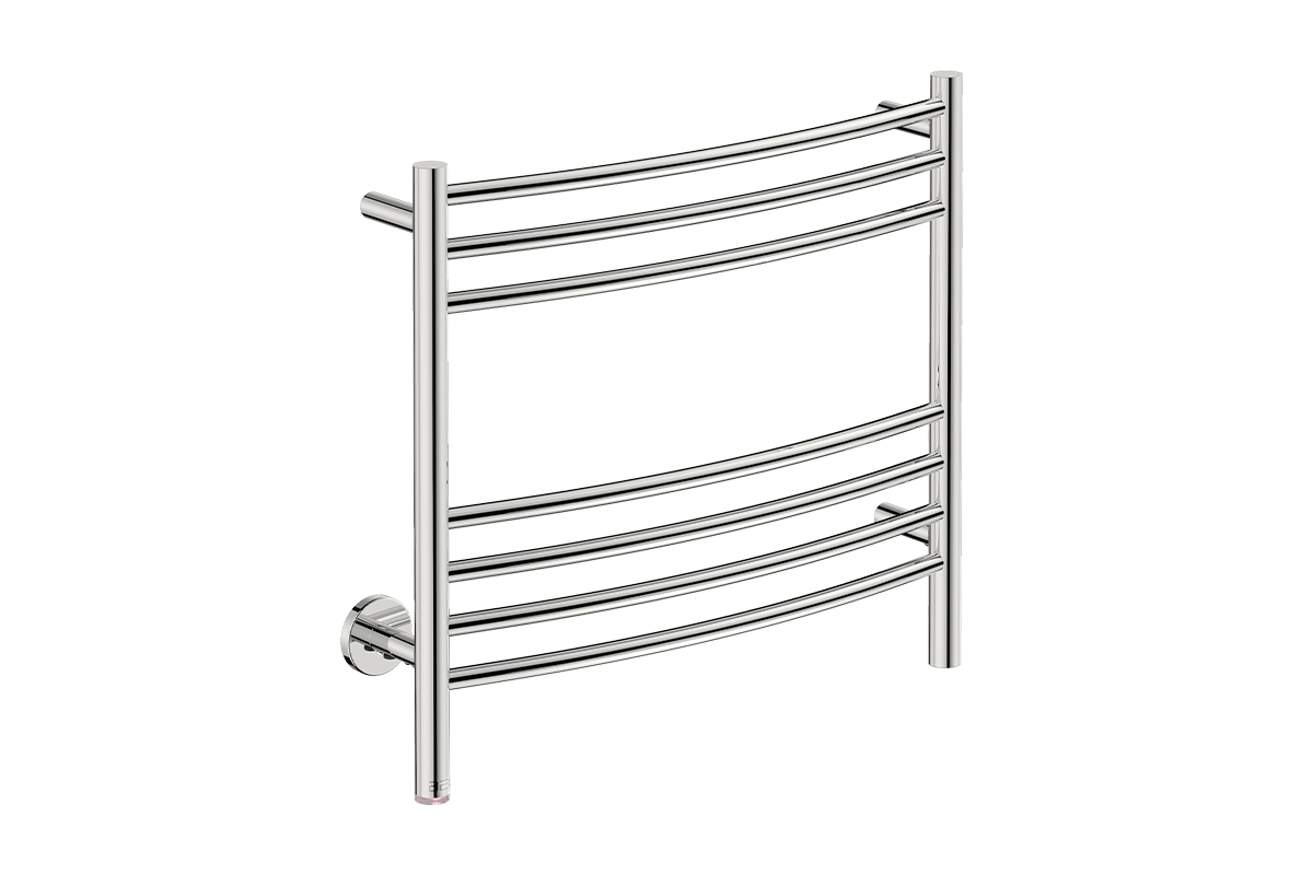 Perfect for the main or second bathroom, this 650mm wide heated towel rail can dry 3 bath towels on its curved horizontal bars, which can accommodate thicker towels. A classic round design with a built-in rotary style controller for on/off functionality.