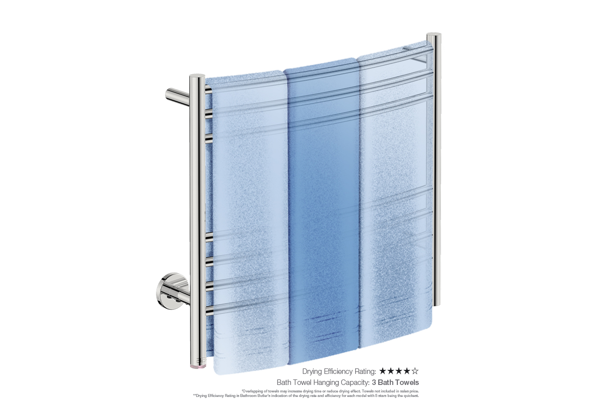 With DET's RAPID HEATING advantage, our heated towel racks achieve their optimal temperature in just 10-15 minutes. This ensures cost-efficient use, allowing you to toggle on and off based on your needs.