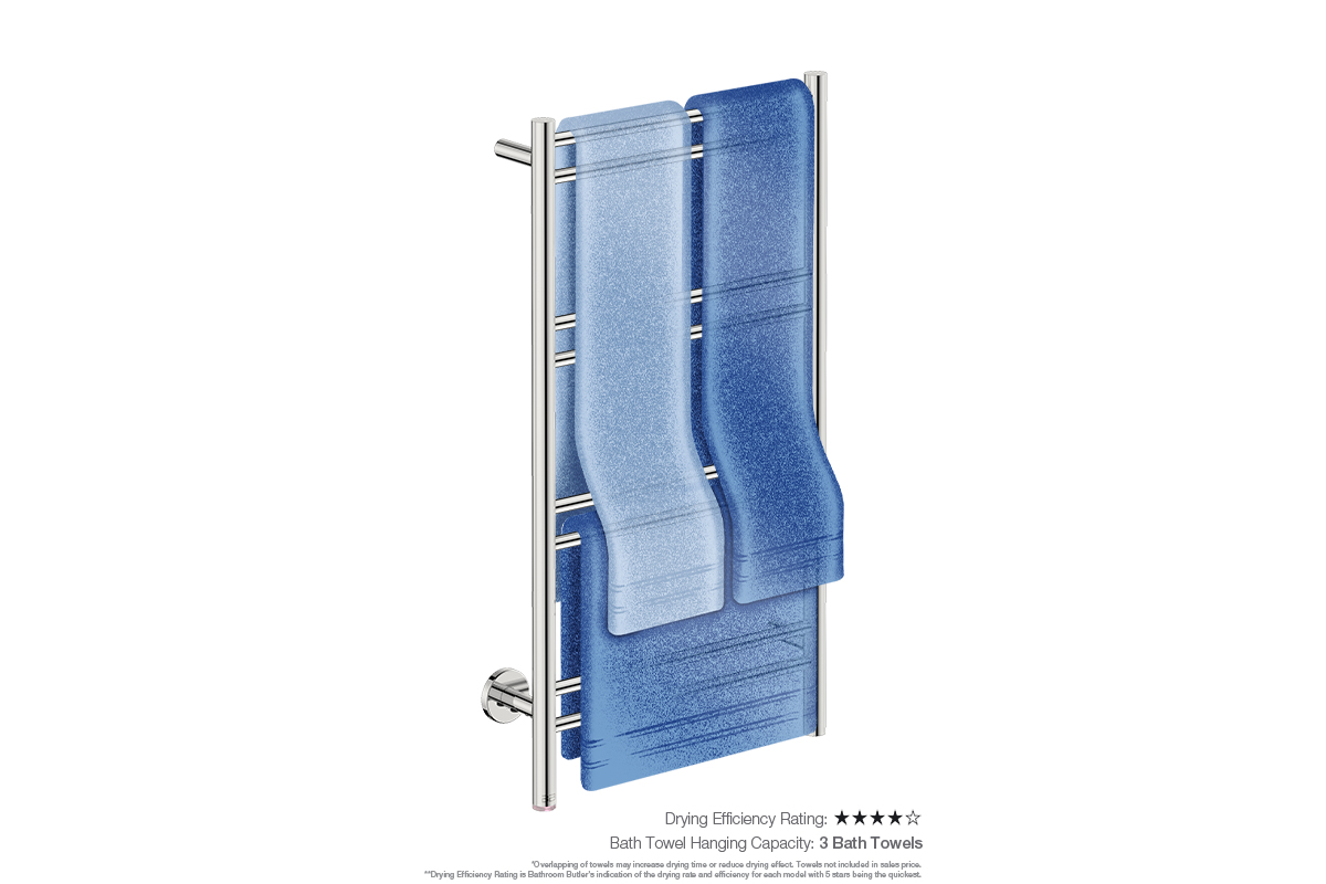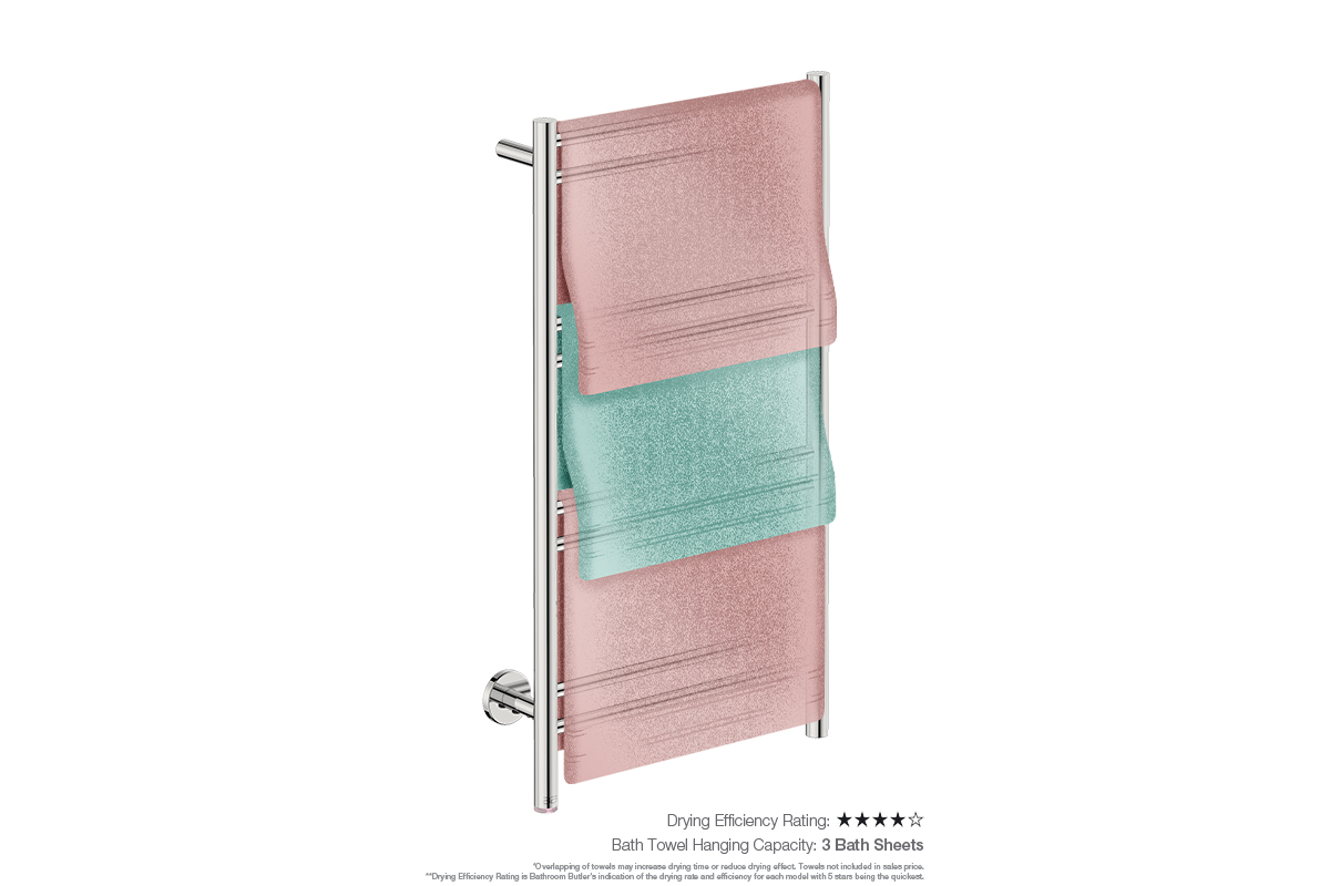 Towel Holding Capacity: This model has the capacity to dry 3 x folded bath sheets and 3 x folded bath towels.