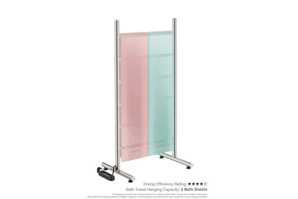 Experience the comfort of dry, warm towels every day with this portable and practical free standing heated towel rail from Bathroom Butler.