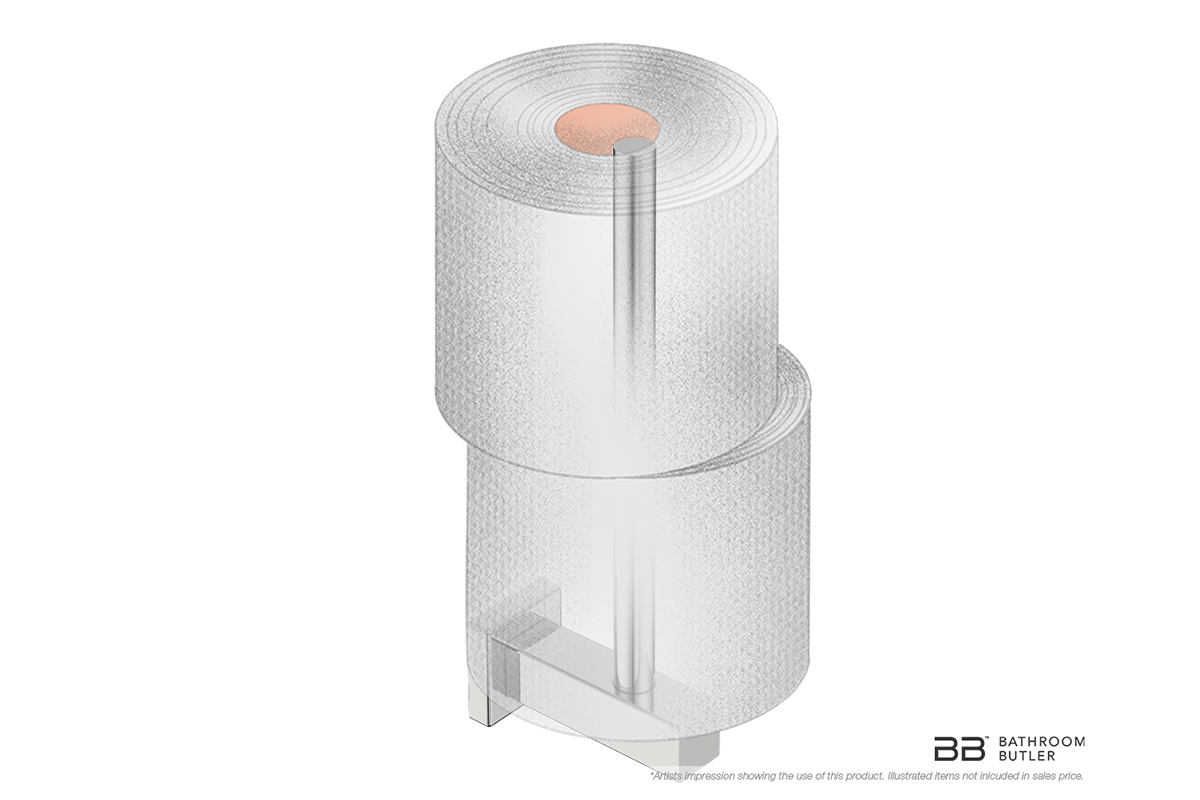 One can always do with having a spare paper roll handy. A seldomly considered necessity, the spare paper holder provides easy access to spare paper rolls when installed within easy reach. A stylish, neat solution to spare paper roll storage.
