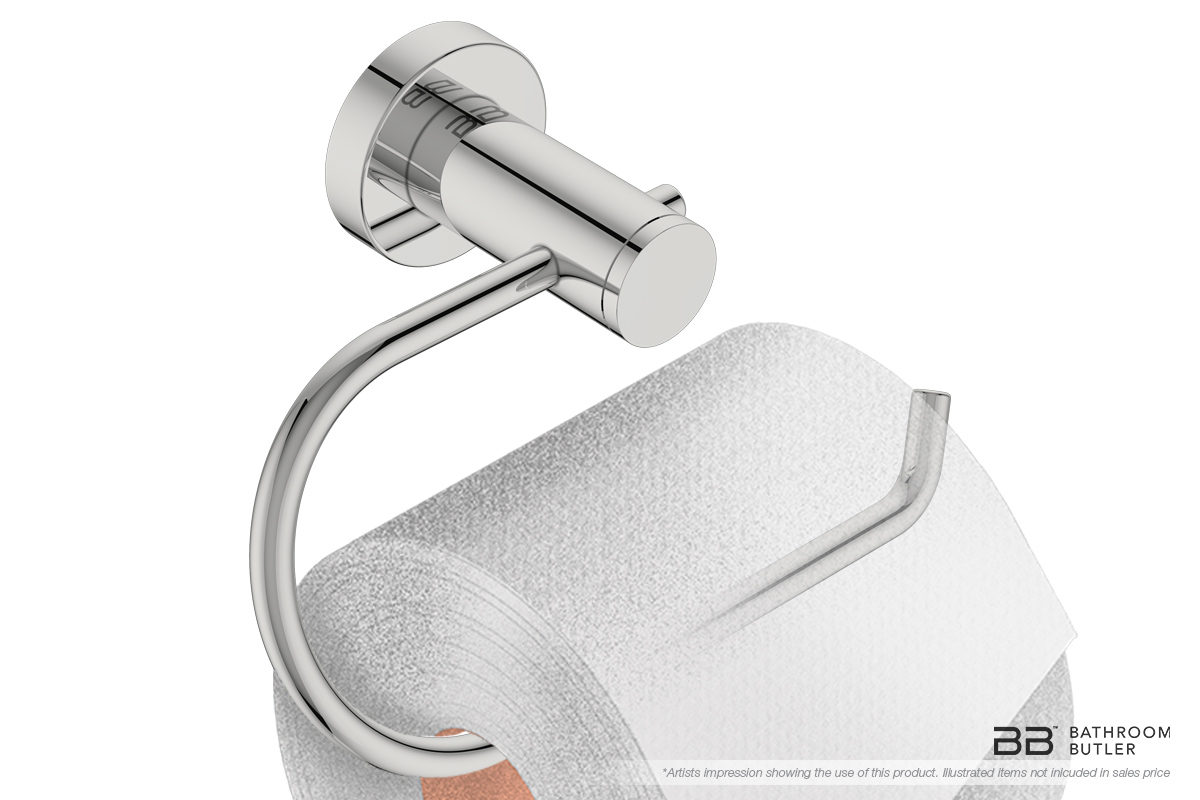 Offering the same timeless round features that are custom to this stainless steel range, we have designed a toilet paper holder with a curved arm and a slight bend at the end, to prevent your paper roll from sliding off. The sturdy arm is also pivoted slightly away from the wall, which makes it easier to replace your standard size toilet roll. The arm has minimal movement, eliminating the problem of banging against the wall/tiles.