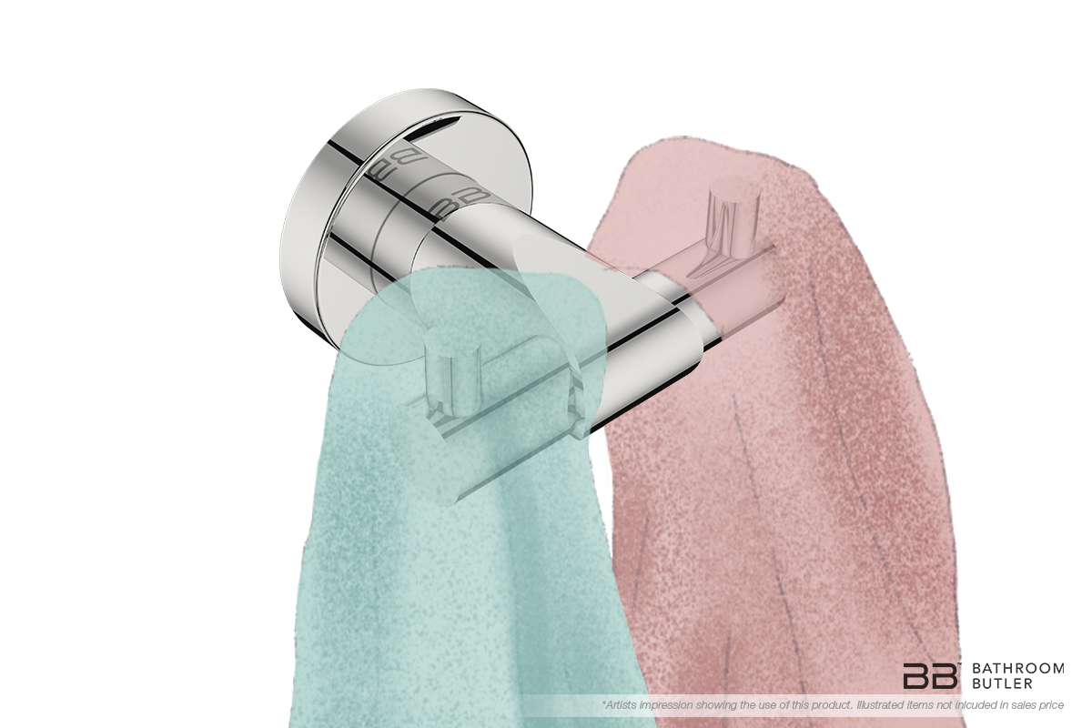 Adding robe hooks to your bathroom space is an easy fix for towel storage and wall space issues. They will help to keep your space oragnised and uncluttered. the multi-functionality of the double robe hook allows you to install it next to or on your vanity, behind the bathroom door, in or out the shower and above the bath. The stainless steel material that we manufacture our accessories from is fully recyclable and non-porous making it eco-friendly and hygienic.