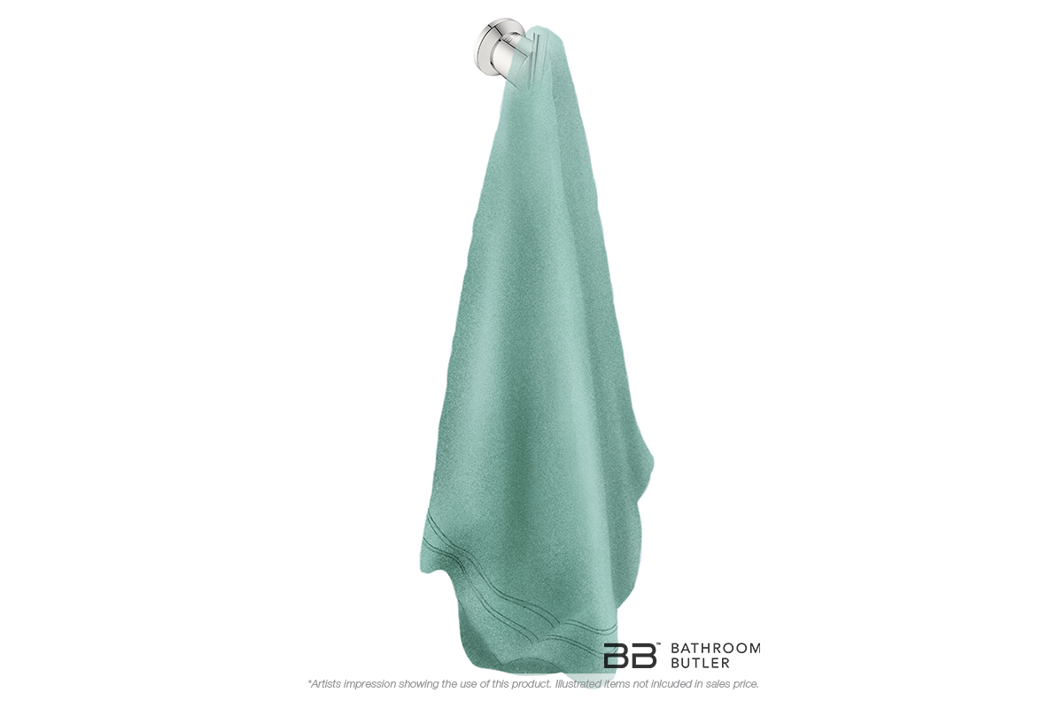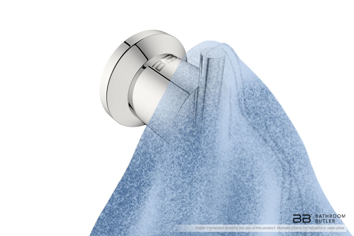 This stainless steel single robe hook with its bold round and crossbar detail, is designed with one pin that holds a full size towel, robe or loofah. Not only can you mount it securely behind a door in smaller bathrooms, with our unique RIGID Loc mounting, it can also be installed onto a glass shower panel, with our glass mounting fixation.