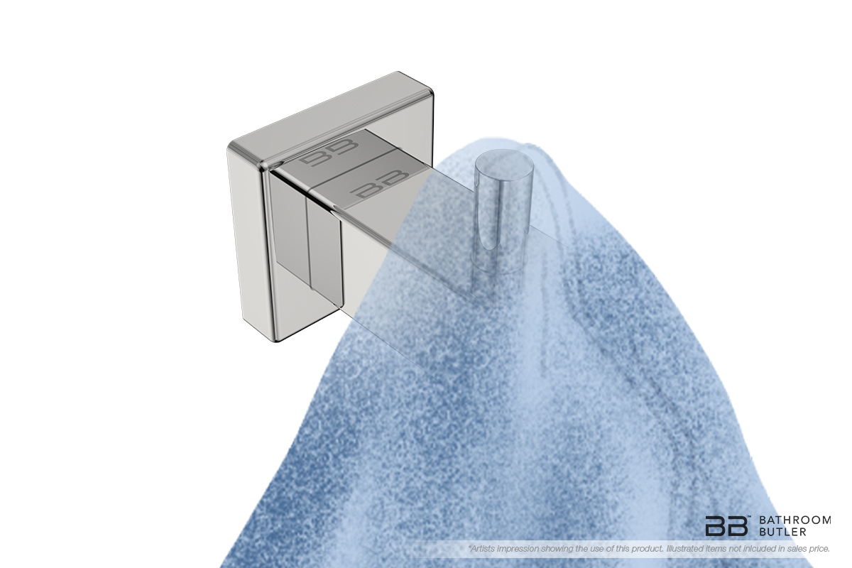 This perfectly square stainless steel single robe hook is designed to hold a full size towel, robe or loofah, which gets hooked onto a round pin that will prevent it from slipping off. We use the highest grade stainless steel which means that your robe hooks can be installed in or out the shower indoors or outdoors. You can also install your robe hook onto your shower glass door as a door handle or additional storage in your shower.