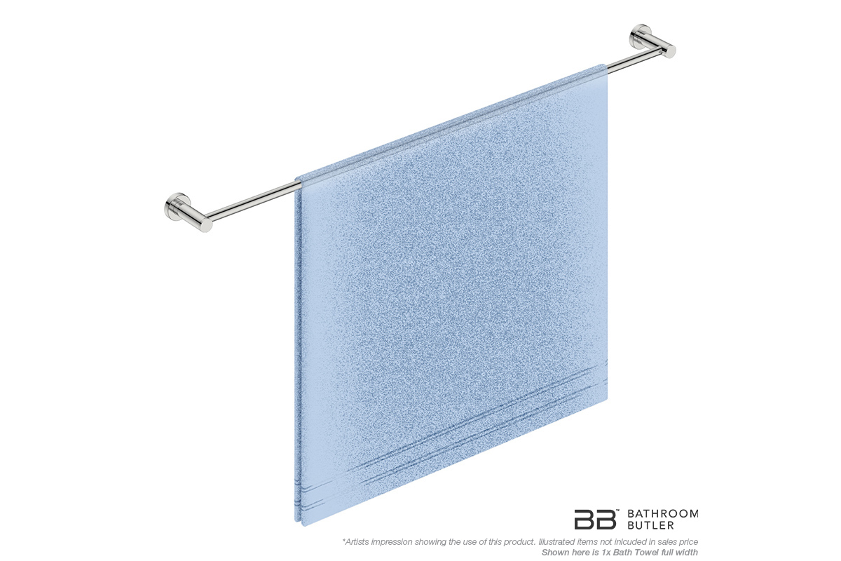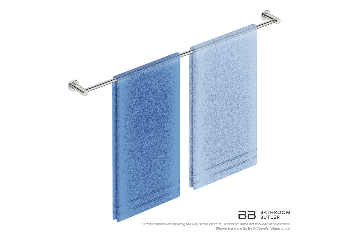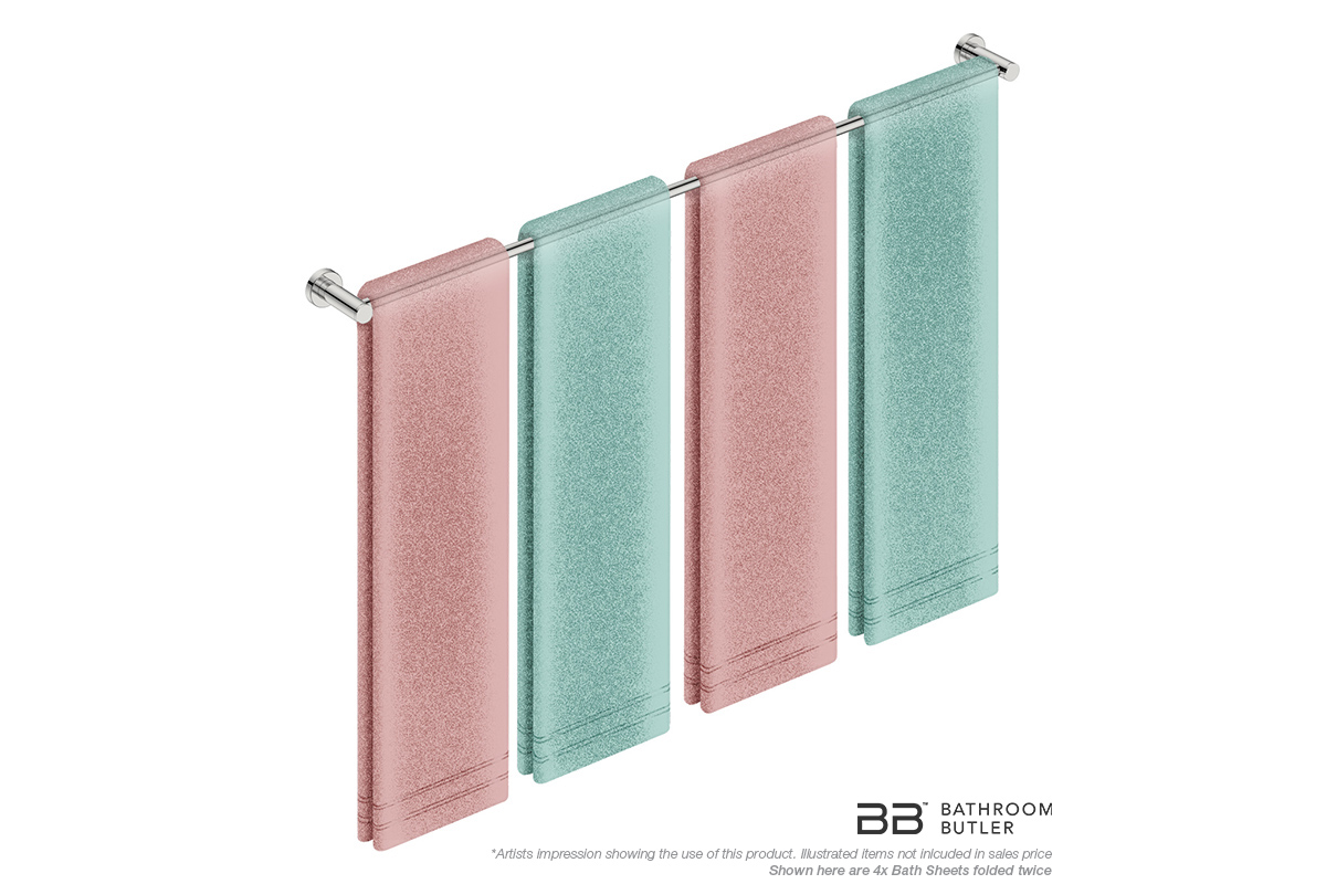 The widest of our rails in the classic 4600 series is the 1100mm single towel rail. The rail comfortably holds two folded bath towels or a single unfolded towel sheet to air dry. Made from the highest grade stainless steel, the rail will not bend in the middle with the weight of a damp towel.