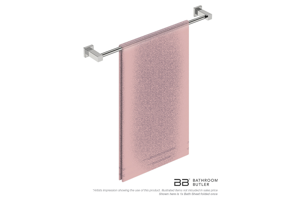 The combination of clean square and round design lines of our 650mm stainless steel single towel rail in this 8500 series, makes it suitable in for bathroom design. It holds two folded towels next to each other, or one fully opened towel and if it happens that you have a few mm’s less space available, you have the option to cut the rail to the desired size by removing the horizontal bar and cutting on site.