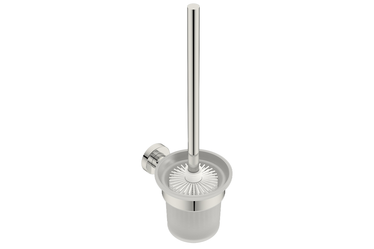 Our wall mounted toilet brush & holder has the same round design features as the rest of the 4600 series, compact in size and manufactured from high grade stainless steel which is hygienic and rust resistant. The stainless steel ring is designed with a removable frosted glass holder that is kept in place by a silicone insert ensuring that it remains secure but can easily be removed for cleaning. The white brush head is replaceable and can be purchased separately.