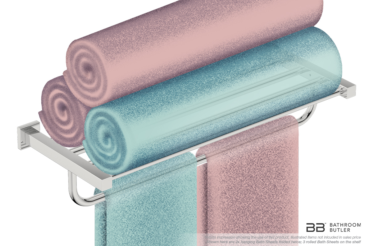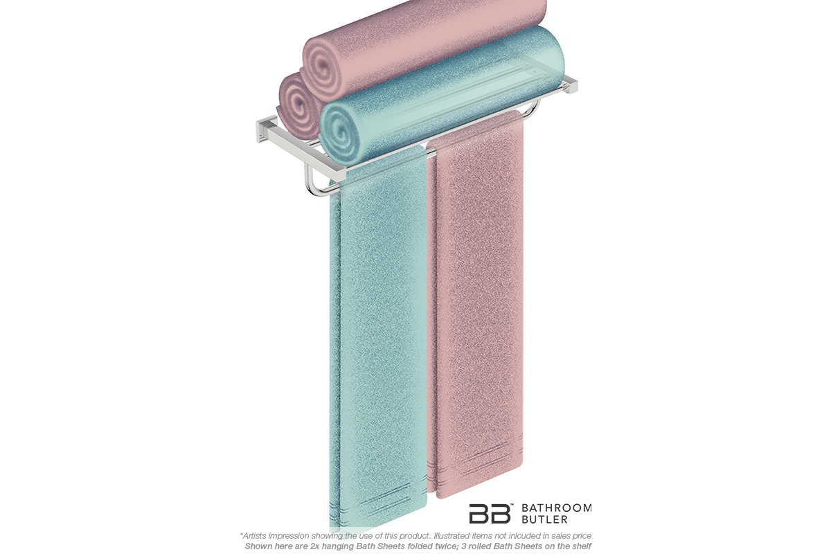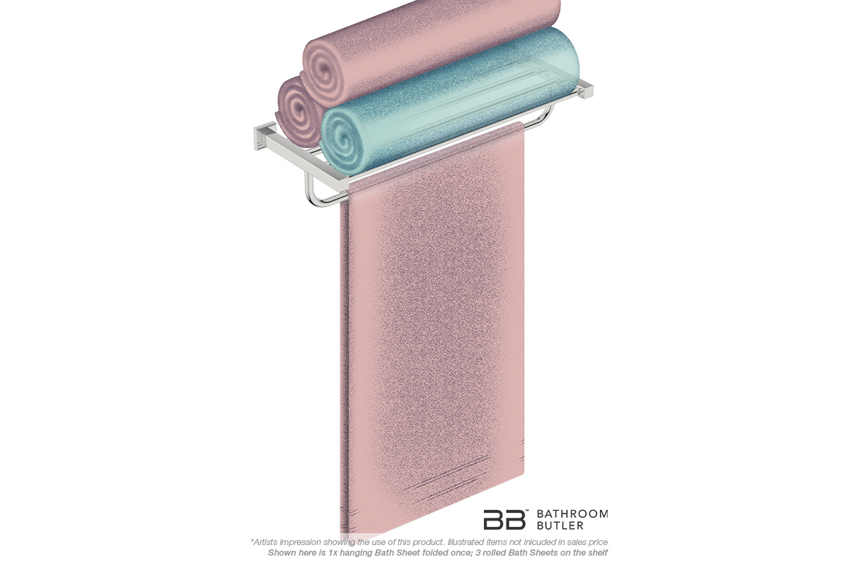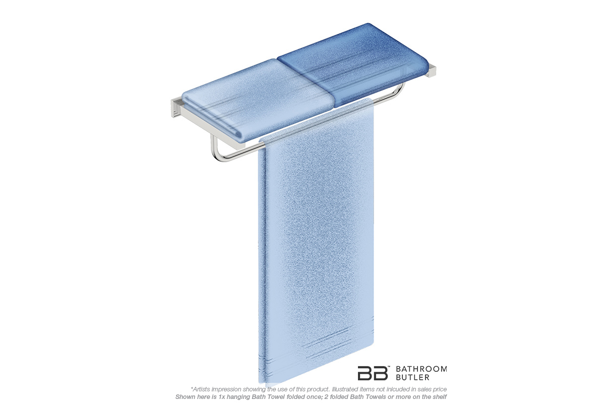 The towel shelf and hang bar is an ideal storage solution for smaller bathrooms and homes. With a 650mm added shelf, you can store clean dry towels or bathroom essentials neatly. Install above your bath or toilet, you get maximum storage out of this one item.