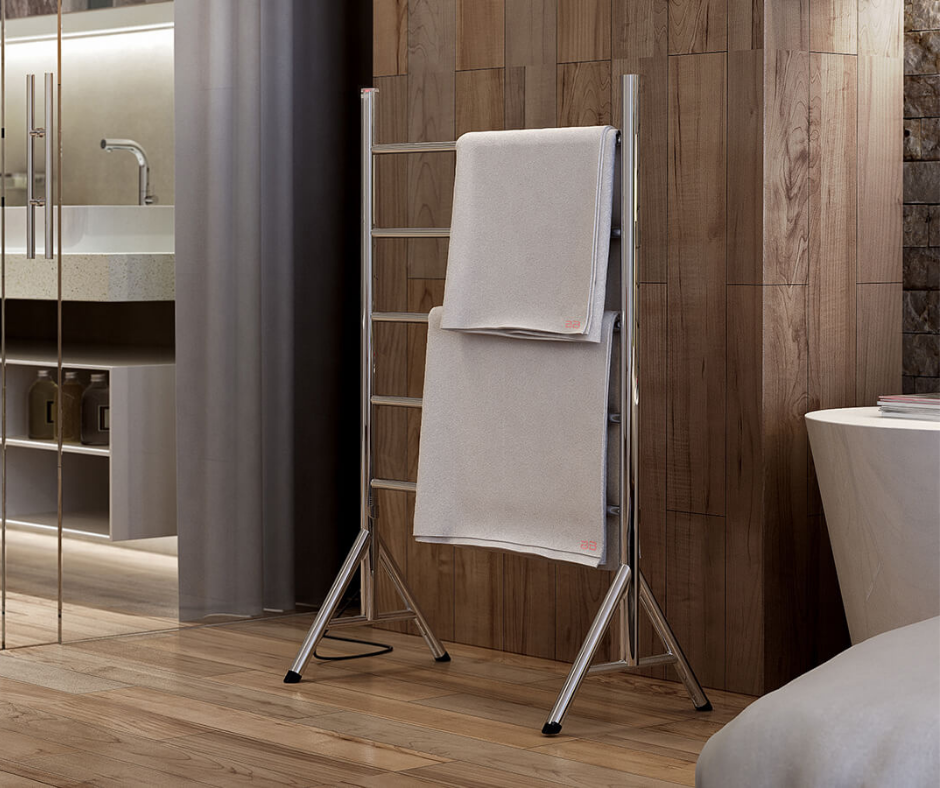Another advantage of a freestanding, heated drying towel rack is it saves you on installation
