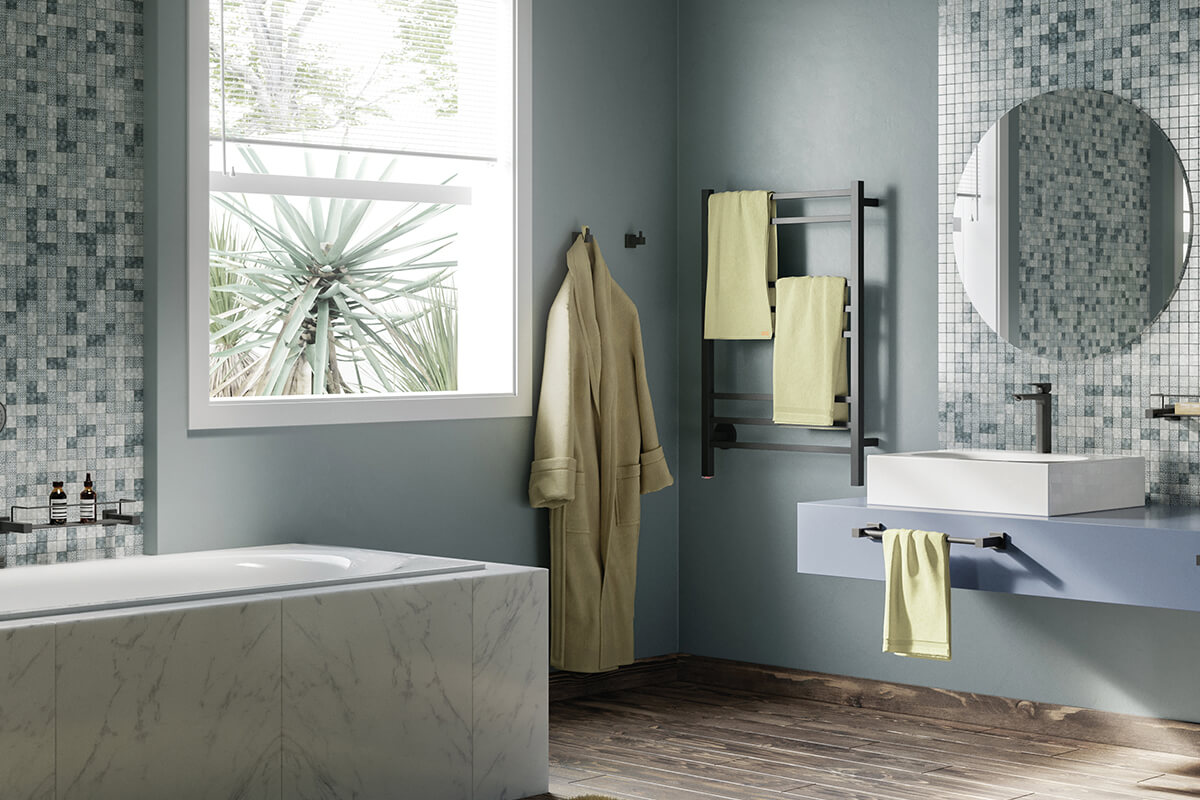 Designed to dry your towels, our heated towels racks use minimal electricity. Dry hygienic towels mean 90% less bacterial build up and less laundry washes which means water savings. With a discreetly built-in temperature control switch that we call the PTSelect (Personal Temperature) Switch, you can switch your heated towel rail on and off at your convenience for further savings on energy costs.