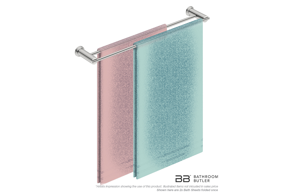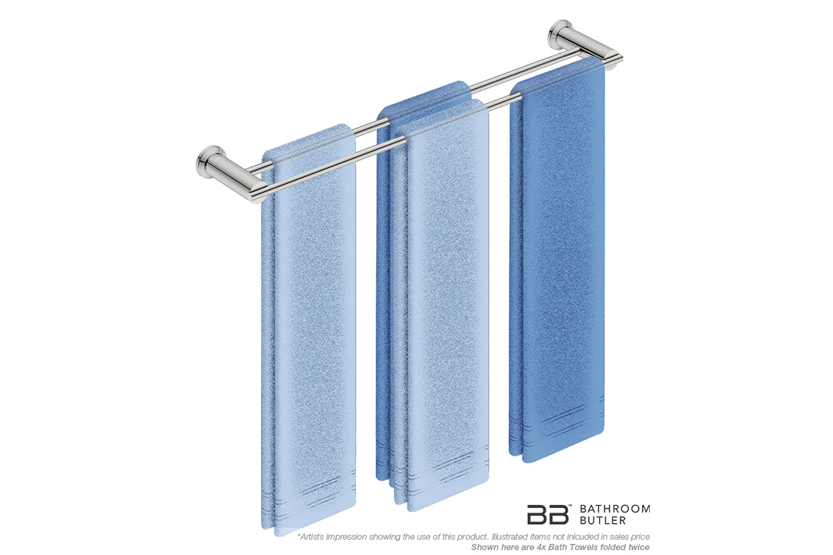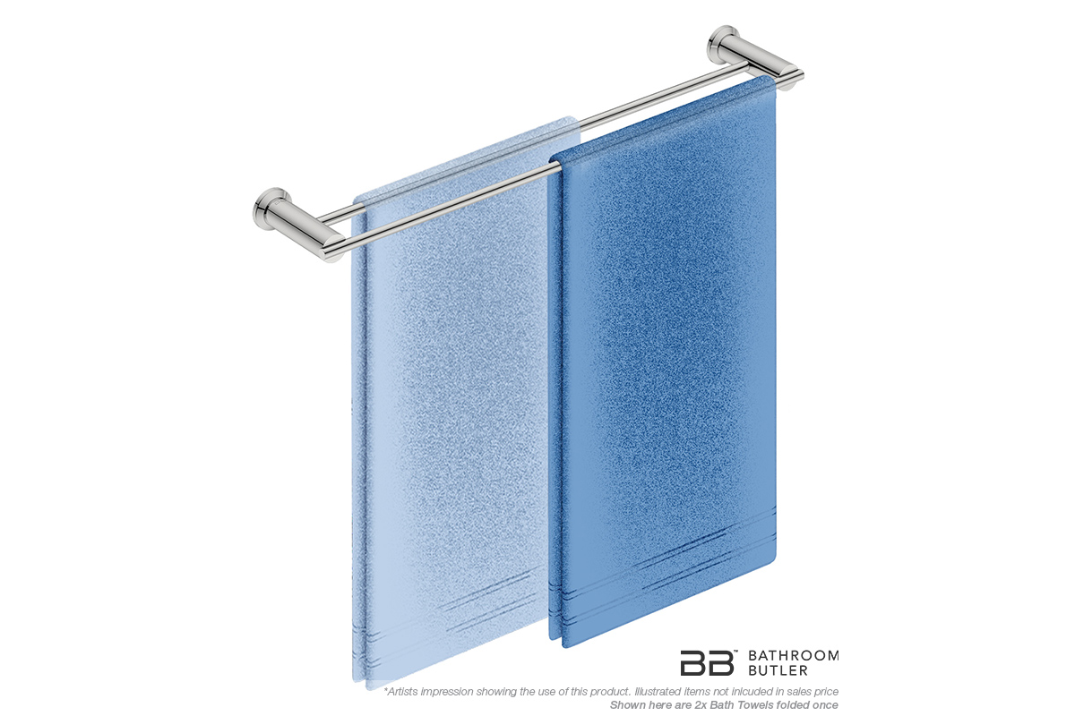 There are four main ways to keep your towels ready for use, all of which can benefit your bathroom design in different ways. These are towel hooks, towel rings, towel bars and towel racks. The benefit of installing a a double towel bar is that you can hang more than one bath towel and they can be opened to air dry before the next use.