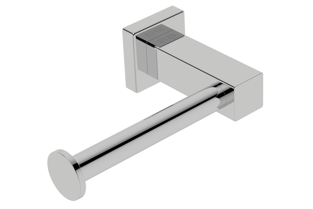 The distinct square design of this left facing stainless steel toilet paper holder with a classic round bar that holds one standard paper roll, will complement any bathroom style, from classic and timeless to modern and contemporary. The round disc stopper at the end prevents the roll from slipping off while in use. Installed with our patented fixing, your toilet paper holder will never work loose from the mounting.