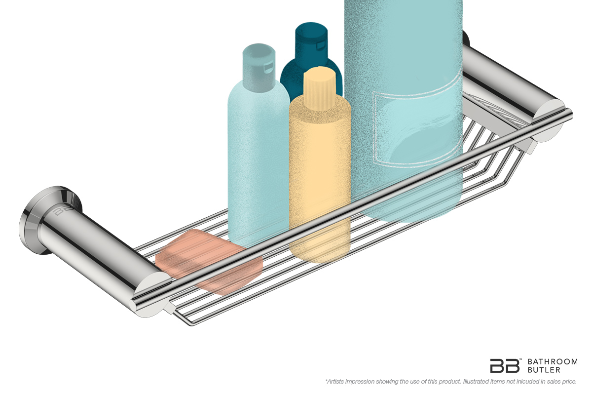 Installing a shower rack in your shower or bath area, is perfect for maximising storage space in that area and at the same time keeping it clean and tidy. A shower rack can also be installed next to a bath for maximum usage. By using Grade 304 Stainless Steel to manufacture our accessories, we ensure that your shower rack is 100% recyclable after it’s useful life.