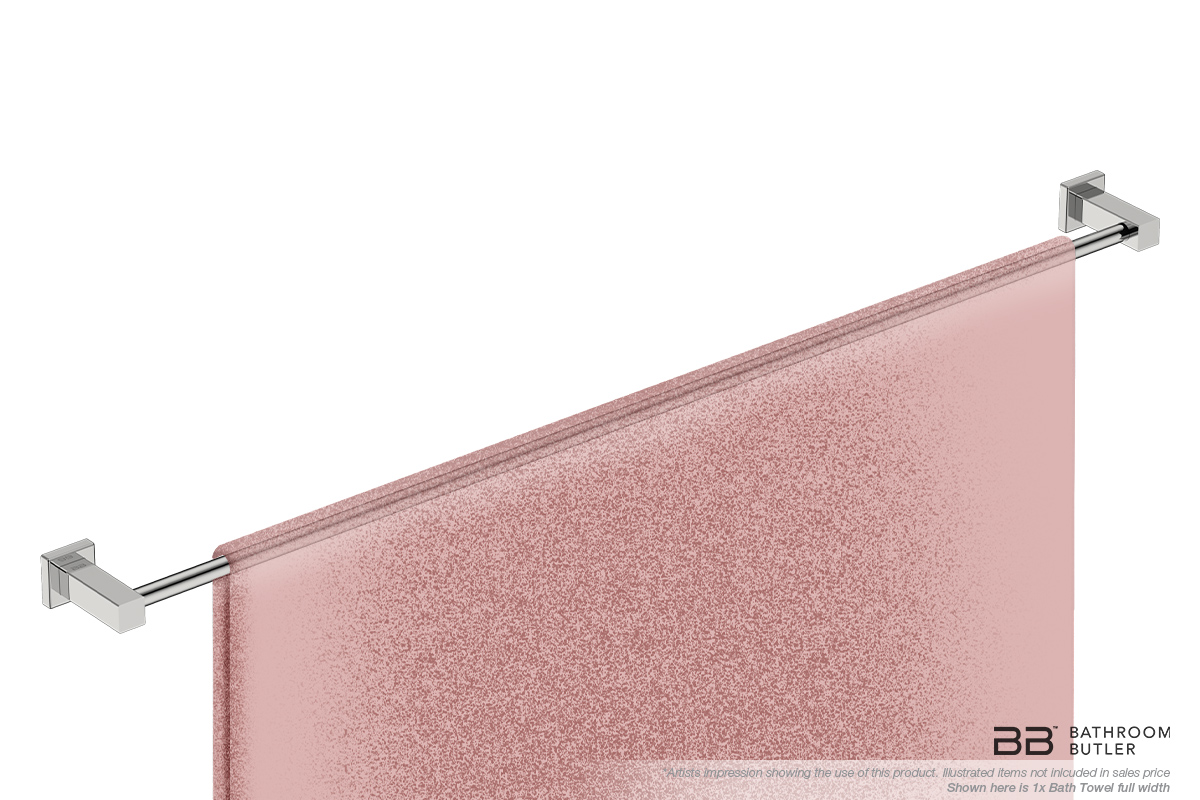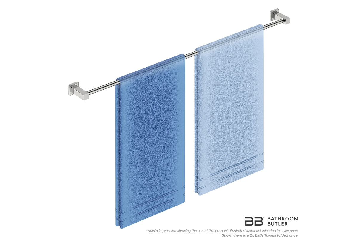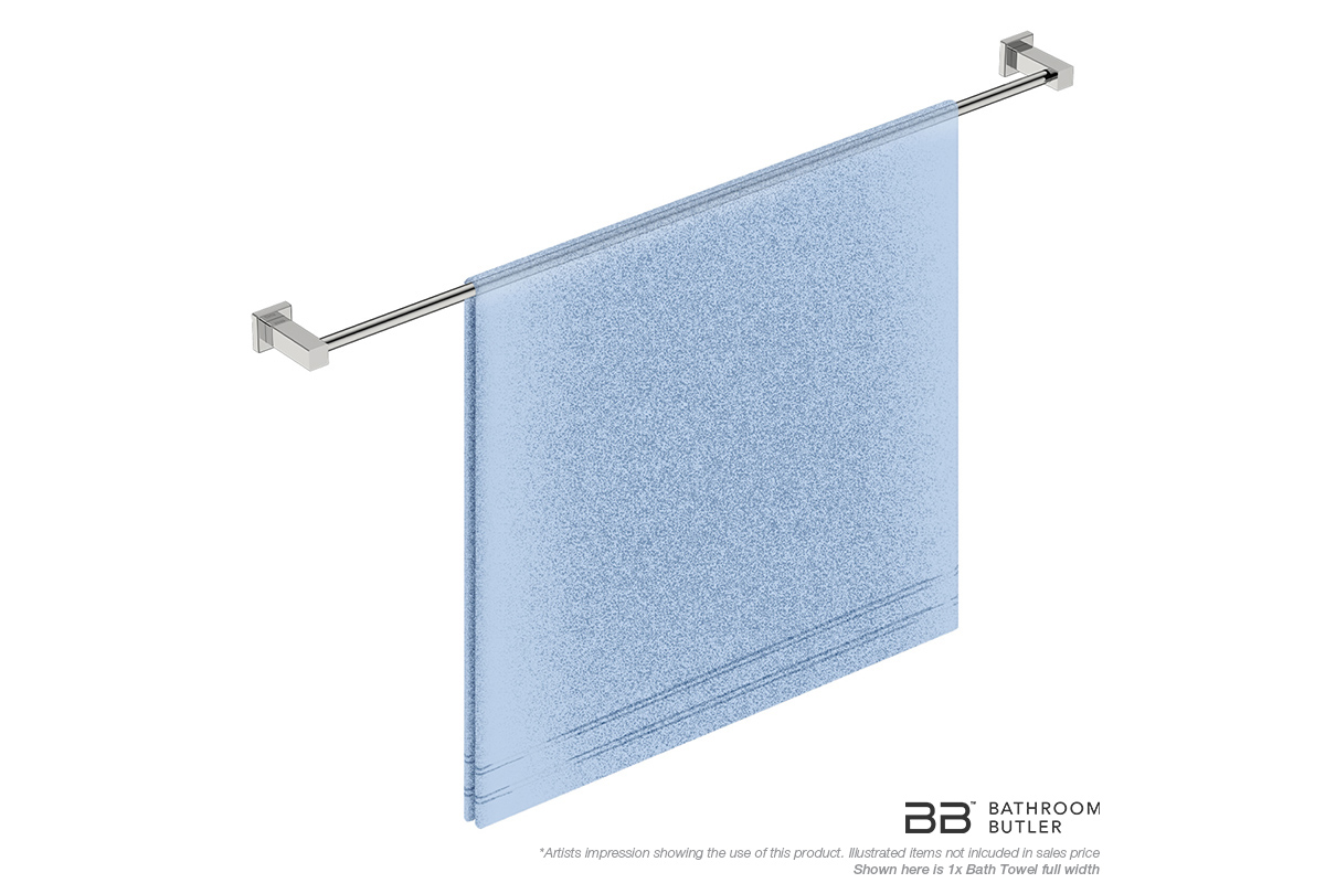 The widest rail in our square 8500 series is the 43inch single towel bar. It holds two single folded bath towels or bath sheets; or a single unfolded bath sheet to air dry. Manufactured from stainless steel, the rail is strong and durable and will not bend under the weight of a damp towel.