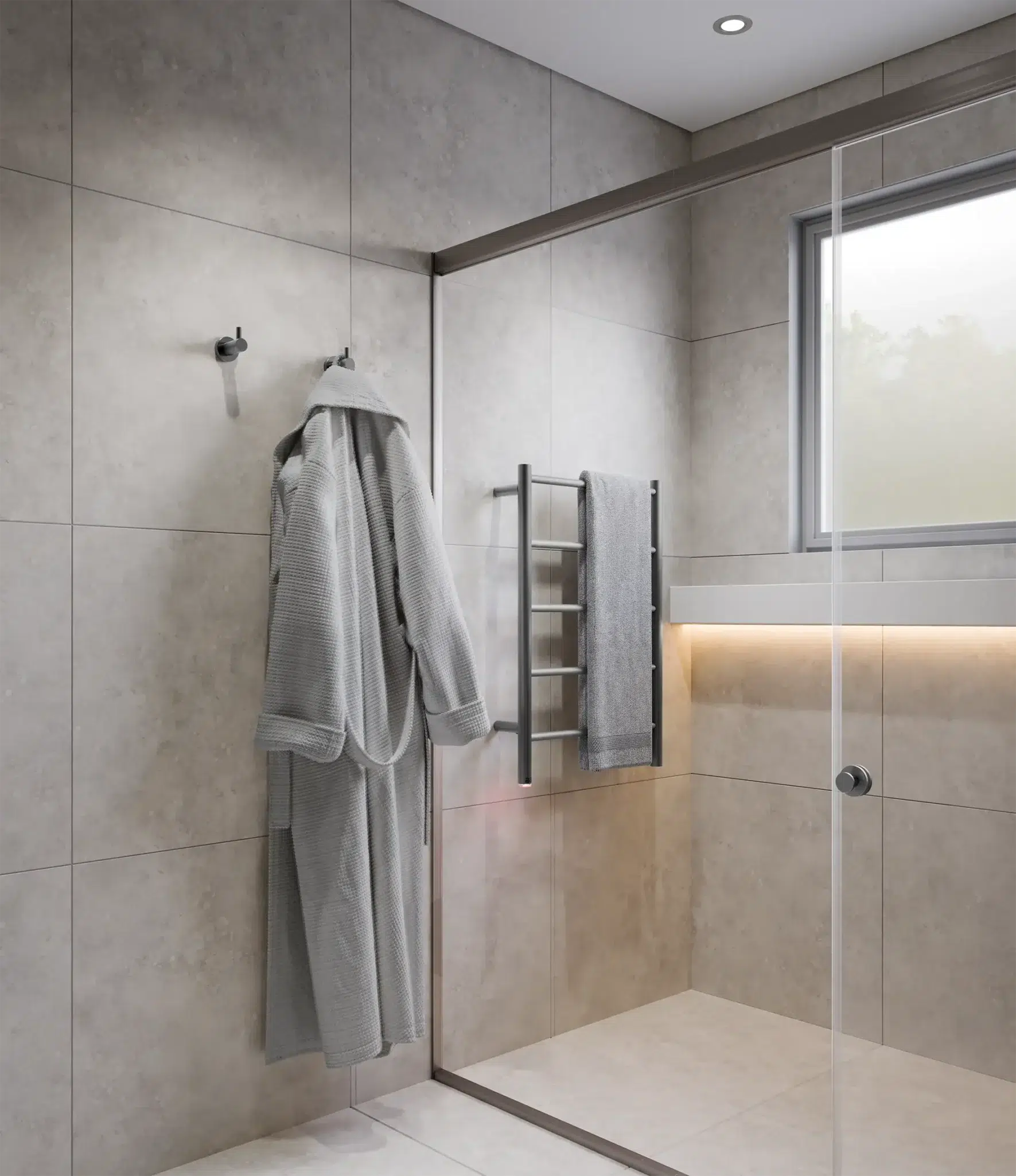 Discover modern allure. Embrace the refined, cool charm of Brushed Graphite Bathroom Accessories and Heated Towel Rails—a finish that effortlessly marries contemporary sophistication with timeless elegance. Perfect for creating a striking focal point, its understated yet magnetic appeal transforms your bathroom into a haven of modern luxury.