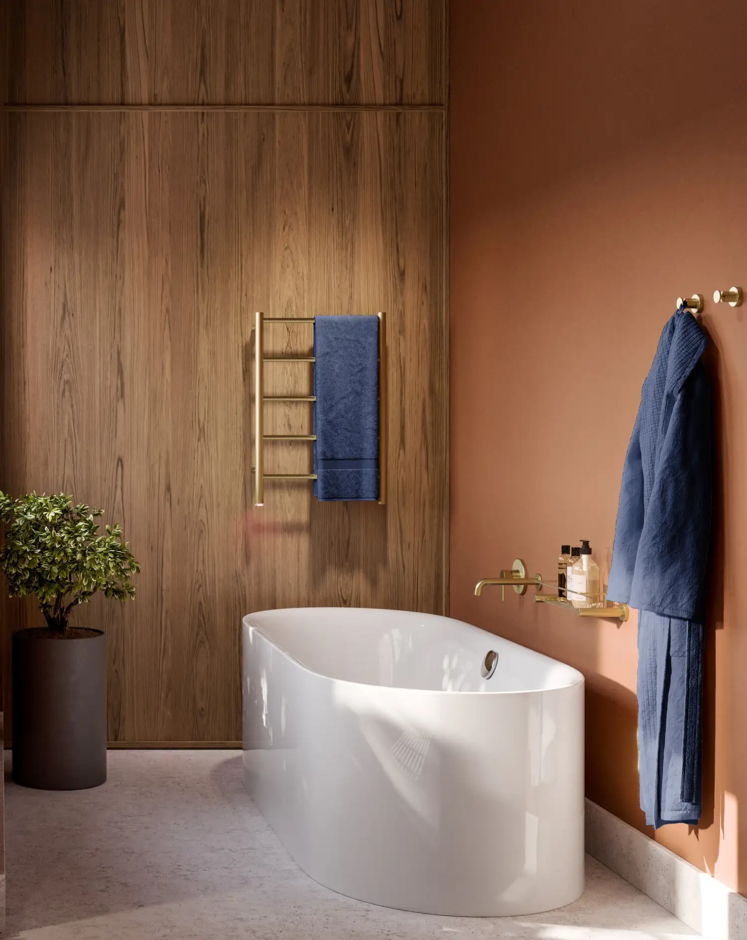 Achieve a seamless aesthetic with Bathroom Butler’s Brushed Champagne Gold Heated Towel Rails and Accessories, perfectly paired with LIQUIDRed’s Brushed Champagne Gold Tapware. This soft, elegant finish brings warmth and sophistication to your bathroom, adding a touch of timeless luxury to any space.